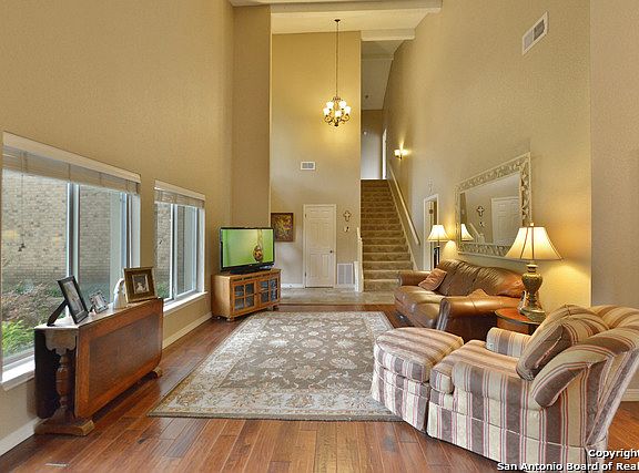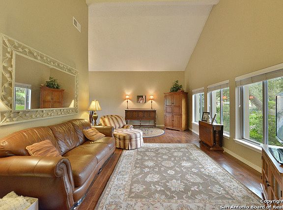Luxurious amenities and tasteful finishes define this stunning home in NEISD! Cul-de-sac street in established neighborhood: Encino Park. Beautiful grove of mature oak trees shade front yard. Green-belt back yard is view from kitchen. Wet weather creek. Large covered rear deck. Matching granite in all kitchen and bath areas. Hardwood floors in both living areas. Slate and tile in all wet areas. Wide stair-case. Walking distance to elementary school, park, pool, tennis, volleyball, basketball, and clubhouse.