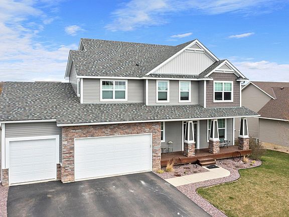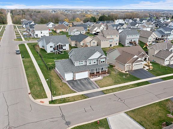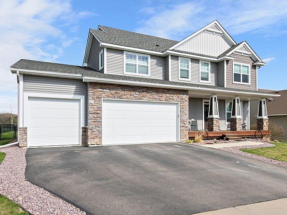 Welcome to Berres Ridge and this move-in ready 2 story home complete with indoor sports court! Known as one of the premier Lakeville neighborhoods, enjoy close proximity to all shops, dining & entertainment of downtown Lakeville + parks, trails and more. Stunning corner lot with fully fenced backyard. Classic covered front porch & gorgeous curb appeal! Spacious main level with private office + huge walkthrough mudroom with lockers. Open dining/living & gourmet kitchen with custom white enameled cabinets & granite clad SPAWLING island! New floors throughout. Keep an eye on the sport court from the viewing window! Large deck walks down to HUGE circular paver patio with firepit. Upstairs is packed with features: 4 bedrooms, laundry & loft up. Private owner's suite with walk-in closet and custom tiled bathroom with ENORMOUS walk-in shower. Lower level has room for expansion plus access to full heated & air-conditioned finished sports court! Top-rated ISD194 Lakeville North Schools.