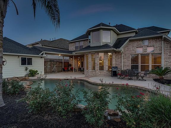 Home and neighborhood stayed high & dry through Tropical Storm Harvey floods! TWO bedrooms down, 5 bds total and 4 FULL bathrooms. Water heaters, AC components, pool equipment ALL replaced. Full house Dupure water system. Hard to find floorplan includes generous-sized game room and hidden room for additional storage. Freshly painted interior. Backyard paradise includes pool with safety gate if needed, covered patio and professional landscaping. An absolute must-see!