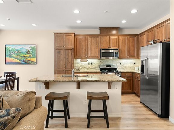Nestled within the highly desired community of Villaggio, this 2 bedroom, 2.5 bathroom condo offers a perfect blend of modern comfort and luxurious living. As you enter, you're greeted by an open and inviting space illuminated by recessed lighting, luxury vinyl flooring and high ceilings. The kitchen is a chef's delight, featuring new stone backsplash, granite counters, stainless steel appliances, and a convenient breakfast bar. The seamless flow from the kitchen to the dining area and family room creates a harmonious living space ideal for both relaxation and entertaining. Conveniently, there's a powder bathroom on the main level, perfect for guests. Upstairs, you'll find both bedrooms with ensuite bathrooms connected to them. The spacious primary suite is complete with a large walk-in closet and the beautifully upgraded primary bath is a sanctuary of indulgence featuring a dual sink vanity with Quartz counters, a walk-in shower, and a separate soaking tub. The generously sized secondary bedroom offers a tranquil balcony and an ensuite bathroom with a shower in tub combination. The sizeable laundry can also be found upstairs for added convenience. Step outside to the enclosed private patio, accessible through the slider in the family room, where you can enjoy al fresco dining in the California sunshine or unwind with a cup of coffee in the morning breeze. The Villaggio community amenities include a sparkling pool, spa, kiddie pool and playground for the little ones. This home offers a luxurious lifestyle in a prime location in the Placentia-Yorba Linda School District, close to the sought-after Yorba Linda High School, Bernardo Yorba Middle School, and Fairmont Elementary. Don't miss out on this opportunity to experience the upscale life Yorba Linda has to offer!