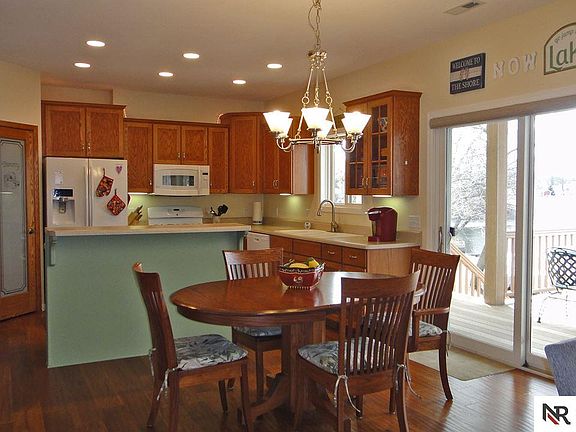 Enjoy lake life on beautiful Bay Lake or golfing at Bay Hills Golf Course, located 10 minutes S. of Bellevue! This lakefront walk-out home greets you with spectacular views and a spacious open floor plan. You'll appreciate the open kitchen & dining area with breakfast bar, abundant cabinets & counter tops, pantry, wood flooring, and main floor laundry. All appliances stay! Retreat to the Master Bedroom with ¾ Bath or enjoy a cup of coffee on the 3 Season Porch. The second floor features 2 Large Bedrooms, Full Bath, & Family Room/ Den. Large loft above garage is perfect for man cave, fitness area, or additional storage. Grill out with family & friends on the covered deck & patio. Swim, fish, & relax on this amazing lake. Main floor of home is handicap accessible. Don't miss this fantastic home!