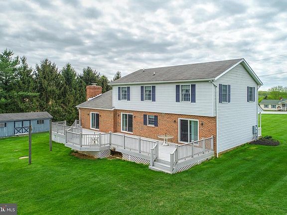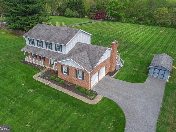 PRICED TO SELL: This spacious home on almost 1.5 acres of private land, and convenient to highway! This solid home is truly a gem, starting with the living room which boasts a wall of built in bookshelves, You'll also find crown molding and chair rails throughout much of the downstairs. The family room, which is open to the eat in kitchen, shows off a brick wood burning, fireplace. The dining room, kitchen and family room all have sliding glass doors which lead to the enormous Trex deck off the back is the entire length of the house and gives views to the very secluded level yard. Upstairs the master bath includes a jetted tub and shower, which is part of the spacious master bed. Three other carpeted beds and a full bath round out the space on the upstairs level. The basement is clean and unfinished but full of potential. 2-car garage and separate shed give more than enough space for storage. Set up an appt today to view your forever home!