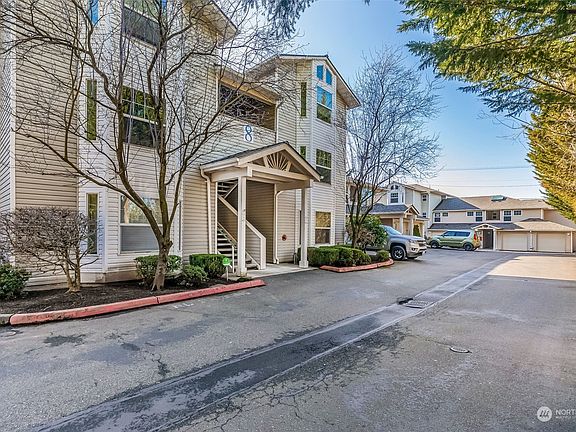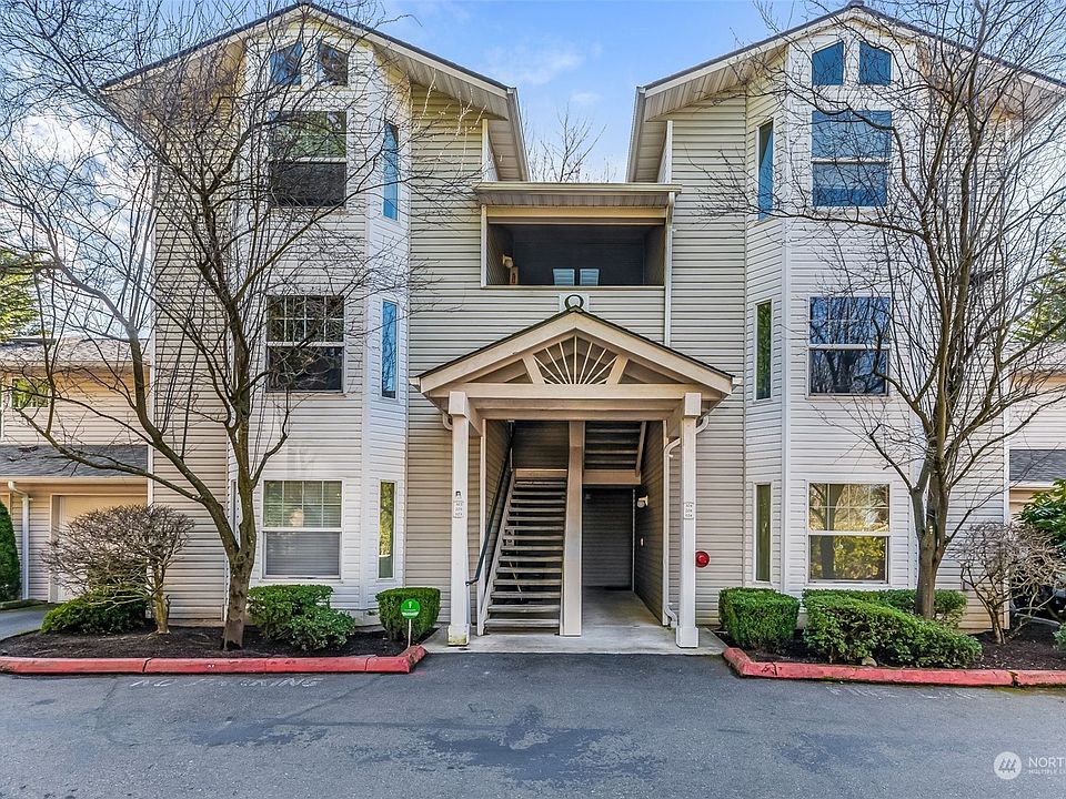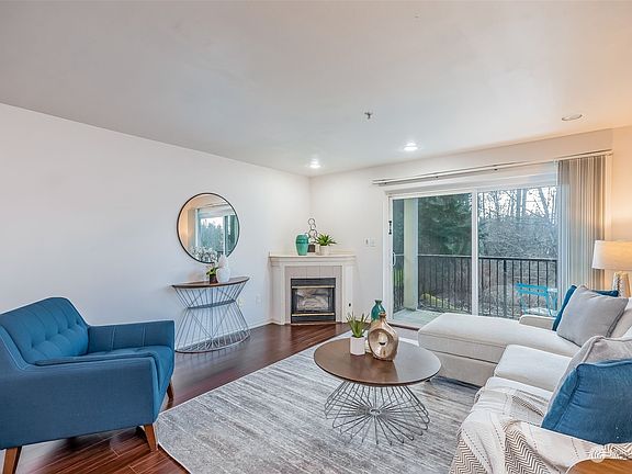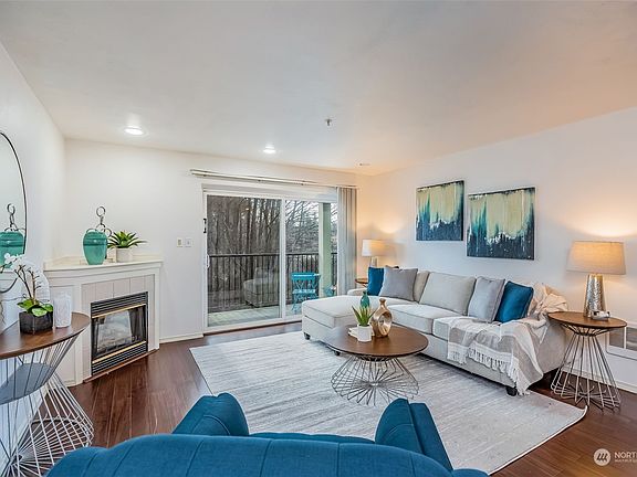 Welcome to Shoreside Condominiums, conveniently located directly across from Silver Lake & 2 miles to the Mill Creek Town Center. Open concept design w/ large kitchen, plenty of countertop & cabinet space, double oven, pantry & stainless steel appliances. Breakfast bar & dining room, great room w/ gas fireplace. Primary suite w/ walk in closet & ensuite bathroom. French doors to large 2nd bedroom. Additional full bath and spacious laundry area with full size washer/dryer. Tile & wood floors throughout. White painted millwork & doors. Covered Balcony overlooks quiet greenspace. Walk to Emory's, Parks & Trails, Swimming, Fishing, Kayaking & Bus line. 2 dedicated parking spots. Pet friendly, low HOA dues & no rental cap.