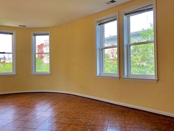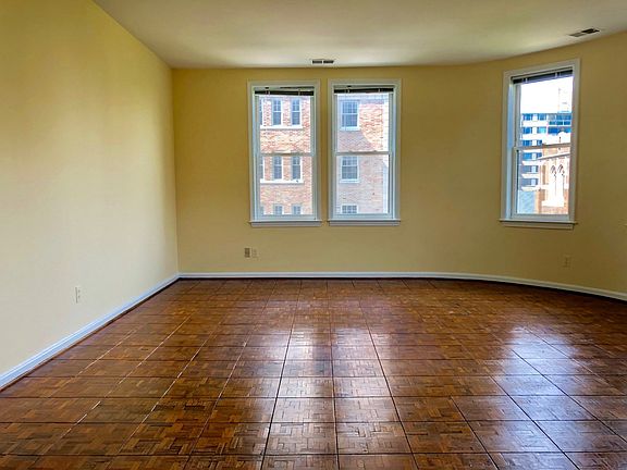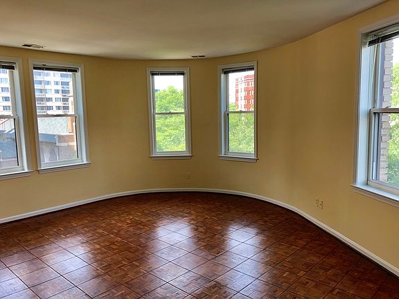 Come see this cute spot with great vantage! Enter apartment into foyer with parquet flooring and coat closet. Carpeted bedroom (16x14) is located at the end of the hallway. Full bath is found just outside the bedroom along with the w/d laundry closet. Second bedroom (12x13) is also carpeted. Renovated galley kitchen comes equipped with an electric range, refrigerator, dishwasher, microwave, garbage disposal along with granite countertops and cherry cabinets. Living room/dining room combo (22x18) is located at the back of the apartment and includes parquet flooring and a wood burning fireplace. This living area has a lovely curved wall with numerous windows that overlook New Hampshire and 16th st, plus a brick accent wall. This unit has wonderful location and is within blocks of metro stops and shopping (plus there is a Starbucks right across the street!). 12 month lease minimum, 24 month leases considred. Tenant pays electric as well as cable/phone/internet. Pets considered. No parking included.