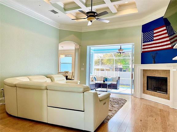 Enchanting 4 Bed, Plus Office/Den, 3 Bath Pool Home with No Deed Restrictions on a Cul de Sac Street. Upon Entering, Take in Breathtaking Views of the Pool from the Living Room with Fireplace, Coffered Ceiling, and Crown Molding. The Large Kitchen Boasts Stainless Steel Appliances and Opens to the Dining Room with Views of the Pool. A Very Spacious Primary Bedroom with En Suite, Tray Ceiling, Walk-In Closet, and Direct Access to the Pool. The Primary Bath has a Jacuzzi Tub and His & Her Sinks. The Split Plan Includes Two Additional Bedrooms and Bathroom on the Other Side of the Home. A Large In-Law Suite, 4th Bedroom, Play Room, or Man Cave is Found on the Second Floor with Wet Bar and En Suite. Enjoy the Florida Lifestyle by the Heated Pool with Outdoor Living Area. The Paver Driveway has Extra Parking and a Shed is Located in the Backyard for Extra Storage. Riverside Boat Ramp is 1.4 Miles Away. The Manatee River, I75, Shopping, Skyway Bridge to St Petersburg, and World Famous Beaches are All Within Close Proximity.