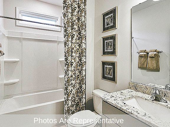 The One Story Dover floor plan offers an abundance of space with 3 bedrooms, 2 baths, a flex space, and 2 car garage. The open kitchen is perfect for entertaining, featuring a large island, gas stove and walk in pantry. Inside the owner's suite on the main floor is a private bath, with tile flooring two separate vanities, large walk in closet and tiled shower. Outside enjoy a large covered porch perfect for those cool Carolina nights.