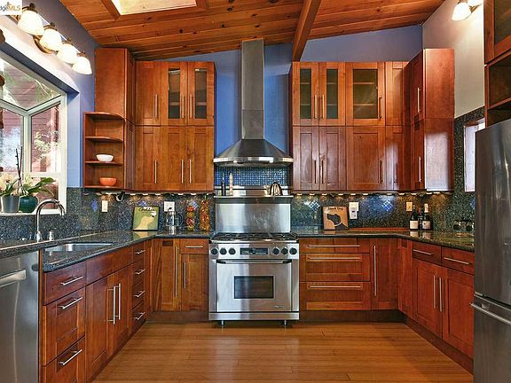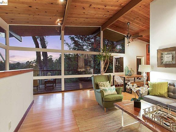 Very special 3++/2 mid-century retreat nestled in the trees of Montclair with its own magical gardens and a personal Pinot Noir vineyard! On the main level, walls of glass and a south-western exposure bring year-round sunshine to the kitchen and main living spaces. Updated kitchen with beautiful wood cabinetry and new stainless-steel appliances. There are two comfortable bedrooms on the main level with one full bath complete with radiant heat tile flooring. The downstairs bedroom and family room offer a flexible living space with adjoining barn doors. Two bonus rooms throughout the home and a workroom under the two-car garage provide plenty of extra spaces. Comfort in any weather with central heat, central air conditioning, and two fireplaces! Ample, private decks overlooking the canyon, serene gardens and exclusive vineyard add to a peaceful and verdant home with a tree-house-feel that lies close to Montclair village, highway 13, and all that the Bay Area has to offer.