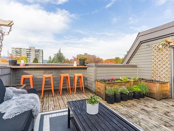 KITSILANO living at its finest! An amazing ROOF TOP DECK made for endless nights of entertainment and absolutely stunning SUNSET VIEWS & BBQ's. This bright CORNER 2 level condo provides an abundance of SUNSHINE through its many windows and skylight above. An OPEN CONCEPT kitchen, newly UPDATED bathroom, in suite storage, 2 bedrooms on the main with an additional 3rd bedroom loft space upstairs provides opportunities for use as a bedroom, office or whatever you see fit! Come for the STUNNING water & mountain views. What more can you ask for with convenient access to W 4th, Kits & Jericho Beach, grocery, coffee shops, restaurants and so much more. This one of a kind complex is not one to be missed. Schools: General Gordon Elementary, Kitsilano Secondary