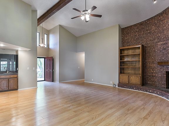 HUGE PRICE REDUCTION & BACK ON THE MARKET! You'll fall in love with this home, situated on a corner lot, in walking distance of Edmond Schools, neighborhood park & shopping! Features 3 bedrooms, Study, 2.5 bathrooms, 2 dining areas & wood floors throughout. Upon entering, you'll enjoy the expansive living area with 2 story tall cathedral ceilings, long wood beam, wet bar, & rounded brick, floor to ceiling wall surrounding the fireplace & built in bookshelves. Formal dining is just off the living area & by the updated eat-in kitchen with new granite countertops, sink, faucet, custom backsplash, lighting, new dishwasher, garbage disposal, cook top, double oven & breakfast bar. Updated bathrooms have new countertops, sinks, faucets, tile & paint. Master Suite has full bath with double sinks, walk in closet, attached study with built-in desk & cedar lined closet. Study could be converted to a nursery, craft room or sitting area. Large covered patio, fenced backyard with shed. New furnace.