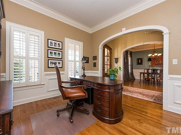 Beautiful Cary Custom Brick Home! Newer Paint. Arch Entries/Plantation Shutters/Lovely Molding/Hrdwd. 1st Flr GuestSuite w/FullBath, Frml Dining Rm & Lvg Rm/Office. Stunning Mantle/Builtins in Family Rm. Gourmet Kitchen w/Granite, SS Appl, Dbl Oven, Gas Stove, Lrg Island. Mstr Bed w/Sit Area, TrayCeil. Mstr Bath: Huge WI Closet, WI Shower w/Seat, Jet Tub. Bedrm w/EnSuite Bath. JackNJill Bath. Lrg WalkUp Flr Attic. HUGE Screen Porch w/Ipe Hardwd/SkyLht. Security Sys. Sprinkler/Landscaped/Fenced. Cmmty Pool