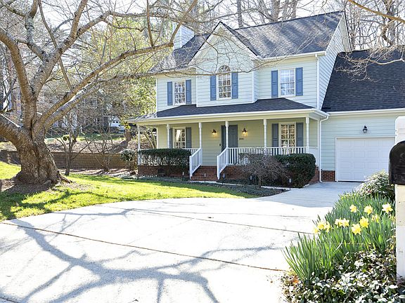 Welcome to Apex! 2001 Chedington Drive is in a fantastic APEX location with easy access on HWY 1. The east-facing house has a big front porch with plenty of room for rocking chairs overlooking the mature landscape. Step inside to find oodles of charm and character, including hardwood floors in the living areas downstairs, crown modeling, a brick fireplace, plantation shutters, a swinging glass door in the dining room for entertaining, chair molding, and built-in shelves. Off the back is a sunny screen porch overlooking the treelined backyard. Primary has show-stopping vaulted ceilings, hardwoods, and an updated bath. Secondary bedrooms have tons of natural light, and the 4th bedroom could be a bonus room: roof 2023, HVAC downstairs 2023, water heater 2024. Waterford Green has a neighborhood pool, tennis court all within walking distance.
