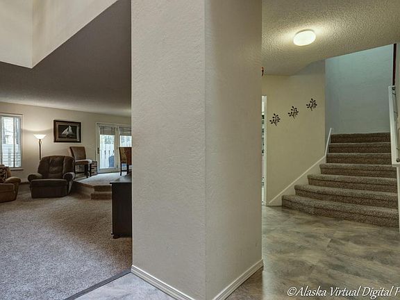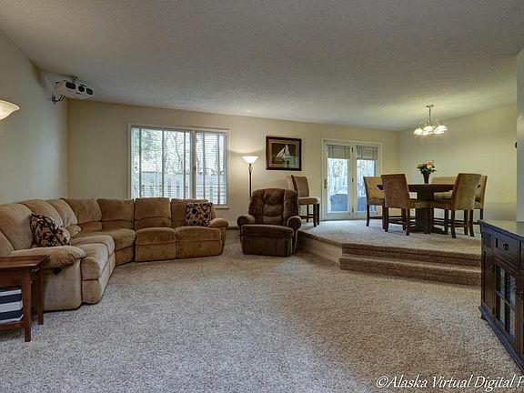 Walk through the arctic entry to a dramatic two story foyer & fireplace wall with skylights above. Desired floor plan has main living on first floor & three very spacious bedrooms upstairs. Common areas in complex create a park like setting and also include separate owner RV storage. Close to hospital, bases, schools, & shopping. Home Warranty too!