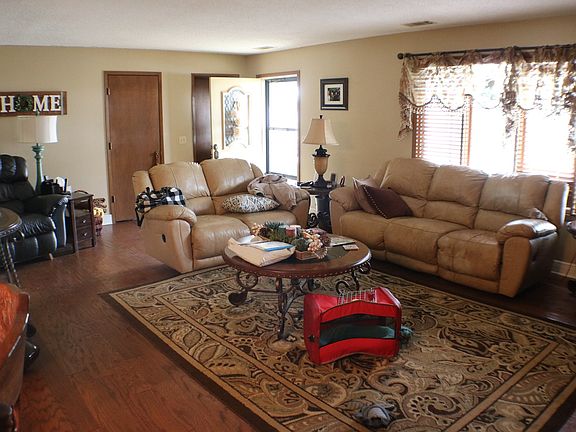 Large brick home for sale in Ava, Mo. Sitting on a tree shaded double lot(200x150), this 4 bedroom 3 bath home is in a nice neighborhood. The house has beautiful hardwood floors with a full finished basement that could almost be another living quarter! There are 2 bedrooms, 2 baths upstairs, and 2 bedrooms, 1 bath and a game area in the full finished basement. Central heat and air. The main floor with the living and dining room are spacious enough for a large table and the kitchen features an eat in bar, and all appliances convey. There is a 9x24 office/get away room with tons of windows, ceramic tile and a fireplace. Home features an attached two car garage, deck, covered patio and storage shed.