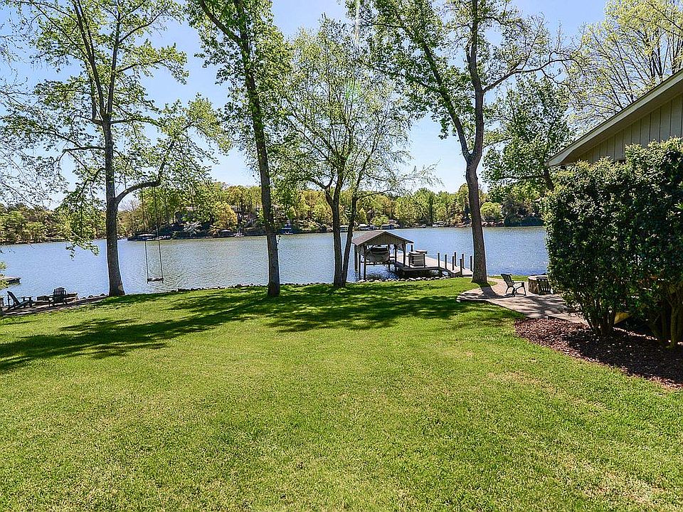 You will FALL IN LOVE! Gorgeous waterfront home on 0.88 acre in Fort Mill Schools with no HOA! Relax and enjoy tranquil evenings from the large screen porch, stone patio with built in gas fire pit, or second stone patio with fire pit at water's edge! Large windows face the lake for stunning views from almost every room. Lush green lawn right up to the water's edge, mature shade trees, in-ground irrigation from the lake, a composite dock in DEEP WATER w/ boat house, lift & floating dock, and a new architectural roof in 2013. Water remains deep even during the most severe draught. New granite countertops & subway tile backsplash just installed!