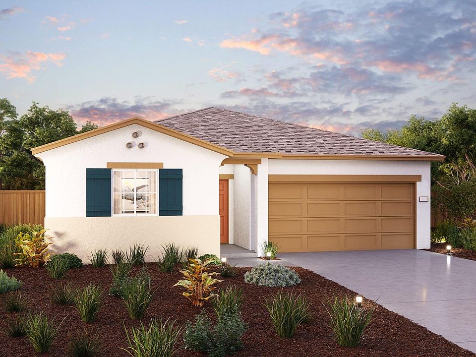 The single-story Camellia plan offers a thoughtful open-concept layout. A generous kitchen with a center island and corner pantry overlooks a great room and charming dining area. A spacious primary suite features a private bath and roomy walk-in closet. You'll also enjoy a convenient valet entry off the two-bay garage with access to a laundry room. Three secondary bedrooms complete this inviting floor plan.This home features the following options and upgrades: Upgraded White CabinetsLocated on lot 52 at Bravado by Century Communities