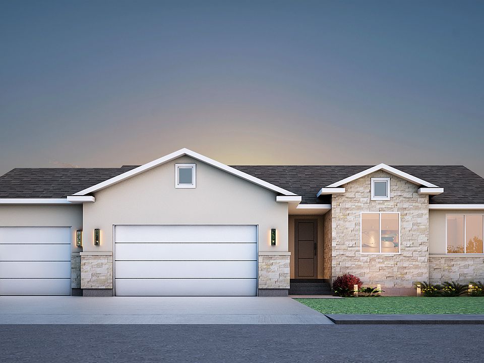 Standard features include: optional bay window in dining room, split bedrooms, tub, separate shower and double vanity in ensuite, vaulted ceilings, covered entry. Optional features include: 3 car attached garage upgrade, 1,616 square foot basement including: 3 additional bedrooms, 1 additional bathroom, large family room.