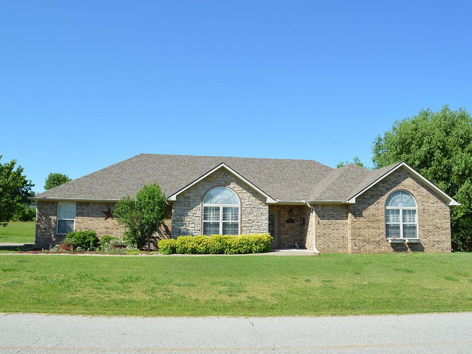 PRICE REDUCED - BEAUTIFUL HOME in Grove. Oversize garage (22' X 22' for 484 sf). Great kitchen & dining area just off living room. Lovely brick & stone exterior, w/covered back patio. Kitchen has island, granite & stainless appliances w/good sized pantry. Master suite has 2 closets, Master bath has Jacuzzi tub, AND walk-in shower. Home has Tile floors and Plantation shutters. Plenty of outside living space, private back yard.