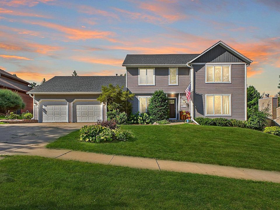 Lovely 2-story home on a quiet street, located just five minutes to downtown. Three levels finished, including lower level with walk-out. Conveniently located, this home is in an established neighborhood with mature trees. The house is light and airy. The kitchen, dining, and family room all overlook the beautiful, private yard. Master suite boasts walk-in closet, plus private bath with separate jetted tub and walk-in shower. Enjoy summer evenings in the 3-season room or have a fire on the custom patio. Lower level features large family room with custom built in. Future bath is ready for finishing. The roomy den could easily be 4th bedroom with addition of closet. Recent updates include roof siding, gutters. Seller has new Furnace, AC, and water softener scheduled to be installed week of 6 Oct.