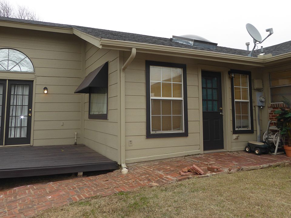 Great home on a nice size corner lot with 2 Outbuildings and an Open Deck. The 2 car garage was converted into a Living Room and an indoor utility room. Master Suite has a walk in closet, step in shower, jetted tub, and double vanities. Kitchen has an island, a hutch, a pantry, and a built in tray divider. 2 original bedrooms were combined into one large 2nd bedroom with double closets. 3rd bedroom has a half bath.