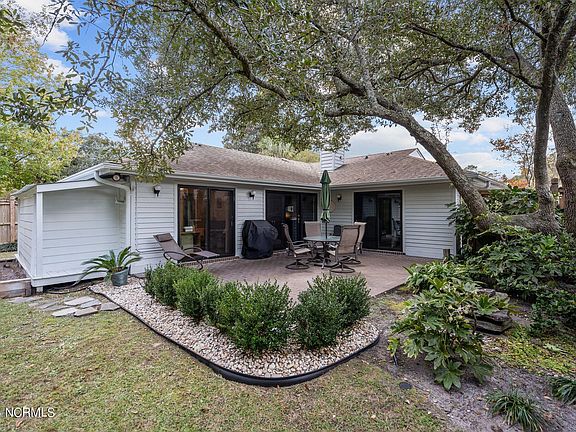 Rare opportunity to own this beautiful, well-maintained home in the desirable prime location of the MacCumber Terrace community. Only 1 mile to Wrightsville Beach, this 1,427 square-foot, 3 bedroom, 2 full bathroom home boasts a warm and inviting open floor layout with premium features throughout including a beautiful wood-burning fireplace. Luxury vinyl plank flooring spans the entire home, creating a lasting surface for any lifestyle. The well-appointed kitchen highlights a reverse osmosis system, new cabinets, granite countertops, stainless steel appliances, and a sizable dining area filled with natural light. The cozy master suite boasts two closets and an en suite bathroom with a tiled walk-in shower. The two other bedrooms and second full bathroom sit towards the back of the home for ample privacy. Spend a relaxing afternoon in the privacy of your fenced-in patio listening to the water fountain, or stroll down your stone path to enjoy a day of gardening. Recent upgrades include newer windows, newer garage door, newer roof (2016), newer HVAC (2017), and newer exterior paint (2022). Other prime features include a wash basin and built-in cabinets in the garage for ample storage and a sizable 12'x6' storage on the rear of the home to house all your equipment and beach toys. MacCumber Terrace is an amenity-rich neighborhood offering a community pool, tennis courts, a clubhouse, and is within walking distance to numerous shopping, dining, and entertainment options. Call today to make it yours!