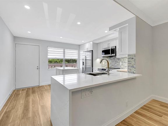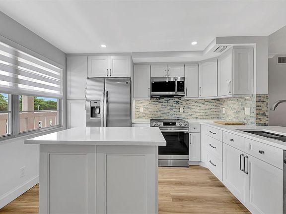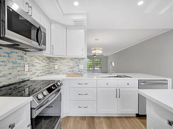 "Move In Ready" Elegant and spacious 2bed 2bath condo with attention to detail and finishes remodeled by an owner/contractor. Upon entrance, you are warmly greeted by a bright and open floor plan with meticulous attention to detail as presented in the kitchen with a lovely new quartz countertop and waterfall, customized glass mosaic backsplash, Under Counter lighting and a rolling island for entertaining. Brand new upgraded stainless appliances with a counter depth refrigerator. The kitchen leads to the large living and dining room with decorative crown molding and baseboard. Luxury waterproof vinyl flooring throughout is warm and easy to maintain. designer bathrooms fully remodeled, Decorative ceiling fans, New W/H and Electric Panel, Garden views