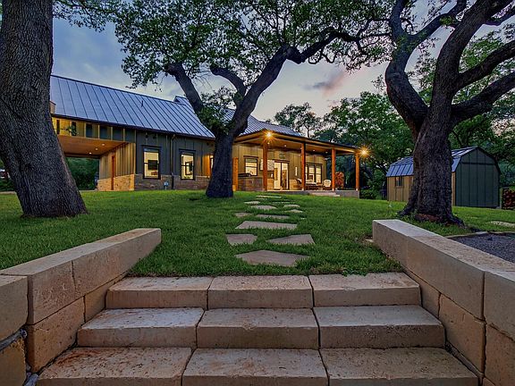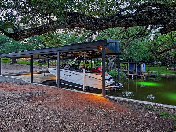 Experience Lake LBJ majesty in this newly constructed, custom Texas Hill Country Chic retreat that delivers unmatched serenity, beauty and superior craftsmanship. Built upon the legacy of those who cherished this land before, the architecture is thoughtfully designed to compliment perfectly the natural beauty of the lush, rolling terrain. Towering clean line elevations, expansive banks of windows and huge covered porches situate the home beneath a canopy of ancient sculpted oaks that reach toward the lake. When the builder was asked what corners were cut during the construction, he replied without hesitation, "ABSOLUTELY NONE." And it shows! Five spacious bedrooms (two with en suite baths,) three full baths with dual vanities, home office/man cave with half bath, warm and open living/dining/kitchen, HUGE island/bar for entertaining, and the seamless flow from indoor to outdoor living and dining- you will LOVE how the property lives. Take a dip in the heated cowboy pool, relax around the built in fire pit, and go jump in the lake! Custom metal fabricated dual lift dock, quiet channel on the cusp of open lake provides serenity and privacy with instant access to everything Lake LBJ! Whether you're escaping for a weekend or lifetime, or searching for a lucrative STR investment, LOOK NO FURTHER! The house is TURN KEY - thoughtfully and beautifully appointed, and will sell fully furnished. There is no better property available on Lake LBJ.