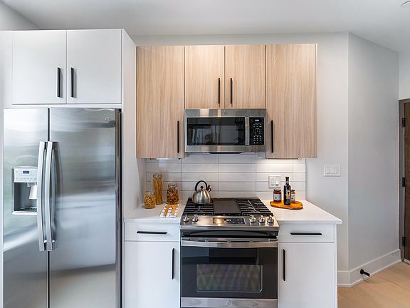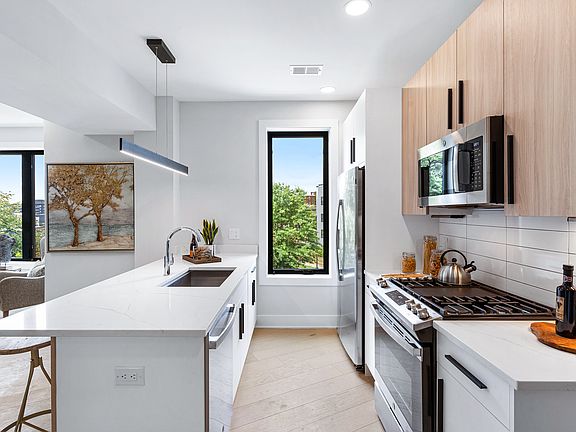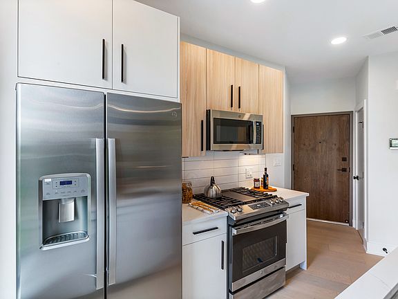 Brand new two-level penthouse unit in a boutique modern building! Updated kitchen with GE appliances, gas burning stove, huge kitchen sink and spacious quartz countertops. In unit laundry on main level. Two bedrooms, each with it's own full bathroom with large soaking tub and double vanities. Closets are outfitted with custom elfa shelving. Upstairs you'll find a HUGE rooftop balcony with breathtaking views. Whether your inside or out the abundance of natural light is stunning.