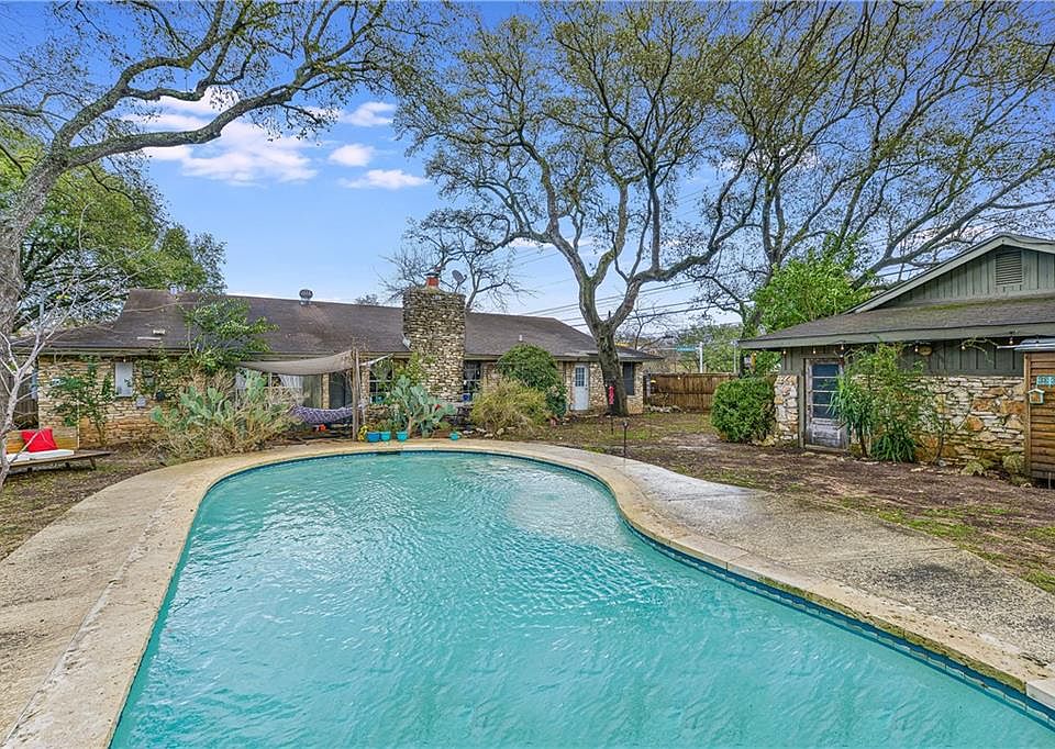 South Austin charmer in Western Trails! 3/2 ranch style home w/ in-ground pool and detached insulated workshop/ potential ADU! Two living areas, concrete/wood/tile floors, custom armoire, country kitchen, and wood burning stone fireplace! Breakfast area as well as formal dining room! Master has private door to backyard, as well as full master bath. Detached workshop has 100 amp service and great potential for casita or pool house. Plenty of off street parking. BIG oak trees and excellent outdoor space. 4 sides stone, matching workshop. Minutes from DT, and very close public transportation. Tenants lease in place. Great rental property opportunities and MORE! Lease expires 9/21