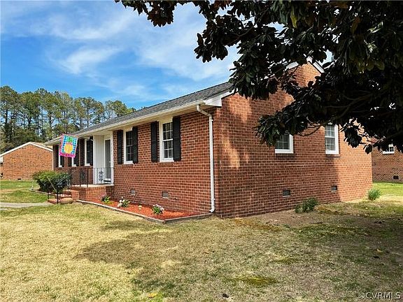 Remodeled in the Spring of 2022, this 1, 680 square-foot brick Ranch style home in the Windmere subdivision has 3 bedrooms and 2 bathrooms. Updates and renovations throughout the home, including a new dimensional roof, refinished oak hardwood floors throughout, new plank vinyl flooring in kitchen and family room; a beautiful custom finish to the family room's wood-burning fireplace. Amazing bathroom transformations, including new fixtures and new tile flooring. You'll fall in love with the en suite's bath with custom glass-door shower. Windows were replaced 6 years ago and the heat pump is approximately 3 years old. The smell of fresh paint resonates with the newness of Spring. There's a lot to love here. Conveniently located near I-95 and I-85, Fort Lee is a 15-minute drive while downtown Richmond is a 33-minute commute. Come and pay a visit soon. House sold as is. Owners have completed a top-down renovation.