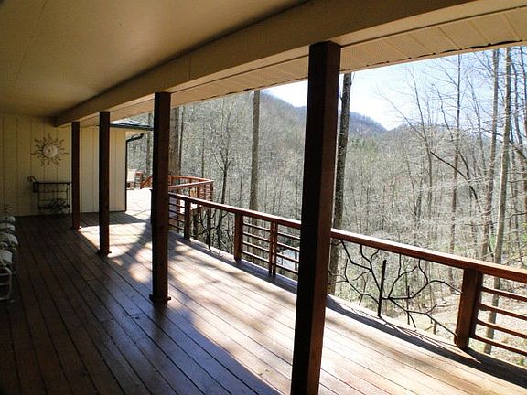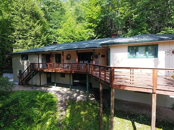 Large Executive home, casual understated elegance. Graceful waterfalls, Little Ellijay Creek is fast, noisy white water, Long range mountain views will stun you for sure! This home is 2 levels and has many updates and high-end fixtures/features. Whole house generator, 2 car attached garage, and a carport, easy access and gentle road. Huge deck, Andersen windows, granite counters, amazing kitchen with laundry attached. Fireplace, windows galore, One level living in this raised ranch. 3300sq ft upper level. 1800sq ft daylight lower level completely remodeled with it's own kitchen, living area and master suite. The ultimate Man Cave or SHE SHED, theater room or in-law suite. WATERFALLS, WATERFALLS and MORE WATERFALLS VISIBLE, ACCESSIBLE, and AUDIBLE from the awesome decks of this elegant home! High Elevation and COOL Summers make this your best Franklin deal in the mountains! Only 15 minutes from Lake Glenview!! Bring your boat!!