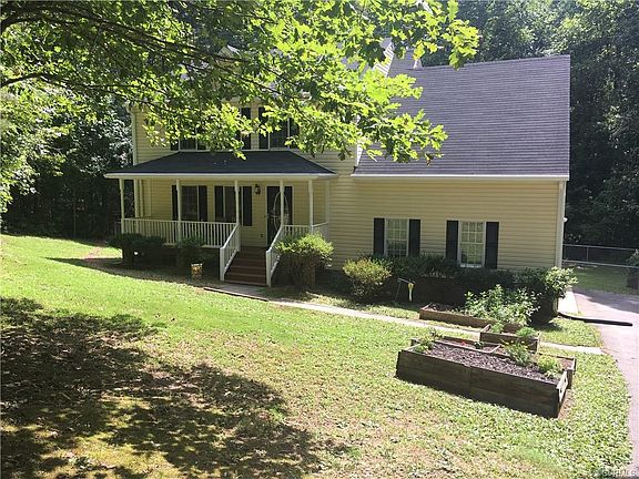 Two Story Home on Cul-de-sac with 4 bedrooms & 2.5 Baths. Freshly Painted Eat In Kitchen and Large Family Room that has French Doors that lead to the Nice Large Back Deck which overlooks the Fenced Yard and Wooded Lot with Stream that crosses the rear of the lot. Enjoy the Country Living in Powhatan but not far from Chesterfield Line. Laundry Closet on 2nd floor in 4th Bedroom/Bonus Room over Garage. Lots of Privacy with 4 acres and nice Neighborhood with NO HOA plus a Chicken Coupe and Raised Garden Beds with Tomatoes that will be ready to pick soon. 2 Car Side Load Garage & Nice Paved Driveway. Water/Iron Filtration System Installed 2013 and (Recently Serviced-June 2018) -Roof Replaced 2015- HVAC Replaced 2015( Outside Unit)-2018 Replaced 2nd Unit Outside Unit & Air Handler-Gutters with Leaf Guards 2018. Septic Pumped July 2019. Home has Comcast High Speed Internet! Sit & Relax on the Front Country Porch and just Enjoy the Beautiful Sights & Sounds of Nature. ****Use Google Maps for GPS vs Waze****