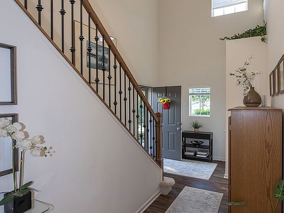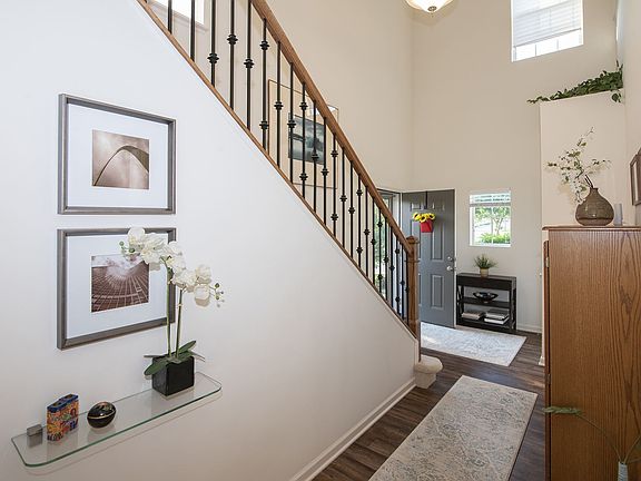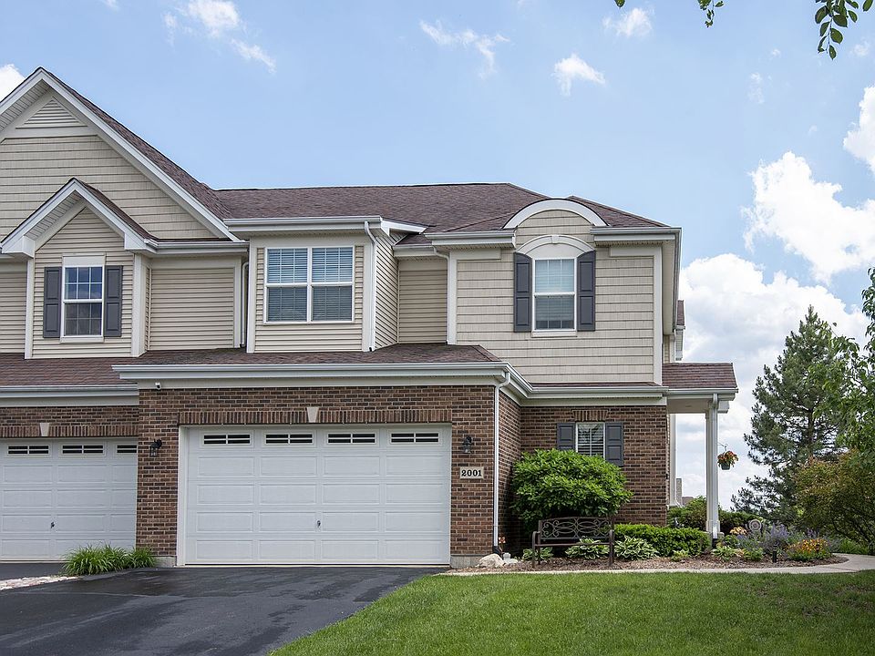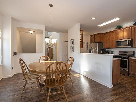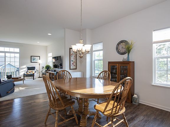 Fantastic end-unit townhome in Glenloch by Andare ~ Gorgeous private entrance with sidewalk surrounded by lush florals & greenery ~ 2-story Foyer greets you with luxury vinyl tile floors throughout hallway into Kitchen featuring 42" upgraded cabinets, NEW stainless steel range & all stainless appliances, beautiful granite countertops & subway tile backsplash too! Kitchen also has a breakfast bar ~ Dining Room open to Kitchen & sunny Living Room with so much natural light & access to deck ~ 1st FLOOR PRIMARY BEDROOM with tray ceiling & walk-in closet ~ Primary Ensuite Bath with separate shower, tub. & dual vanity ~ 1st floor laundry room with storage ~ Heading up the wrought iron stairs to the 2nd floor find 2 more bedrooms, loft & full bath ~ Full Walk-Out Basement with plumbing for bathroom ~ Owners started finishing with studs up & more ~ Brick Paver Patio from walkout basement ~ HVAC replaced in 2022, A/C 2020, Sump Pump 2022 plus newer washer/dryer too! ~ 55+ community that allows some 45+ too & includes many amenities like pickle ball, bocce ball, clubhouse, fitness center, snow removal, landscaping, exterior maintenance & more! A 10+
