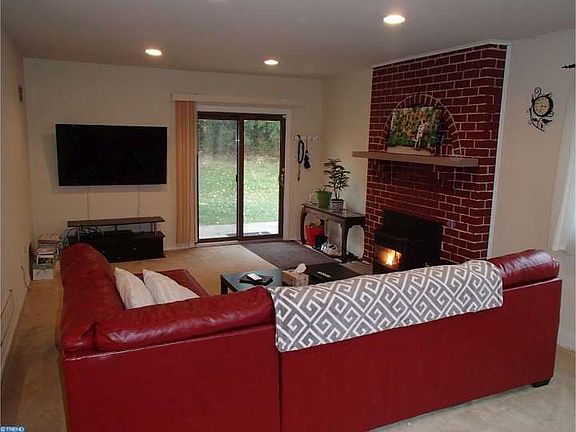 Get ready to enjoy summer nights at the pool and playground! Largest floorplan available, this spacious END UNIT on CORNER LOT offers large lawn and privacy! Lawn care, trash, snow, roof, exterior maintenance are included! Enter the nearly 2,300 square foot house to the living room, which flows into the formal dining room. The adjacent BRIGHT ALL-WHITE KITCHEN has an eat-in area and pantry. The OPEN FLOOR PLAN welcomes you into the family room with sliding patio doors and fireplace (with newer pellet stove 2015). A laundry room with storage, half bath, coat closet, and window seat complete the first floor. Master suite on second floor has large walk-in closet and full bathroom with double vanity and tub. Completing the second floor are three additional spacious bedrooms with large closets and windows, a linen closet, and a full hallway bath with double vanity and tub. Every bedroom has FLOOR-TO-CEILING WINDOWS that stream in tons of bright light! Basement is carpeted and an opportunity to add even more value to your home! This move-in ready home is perfect for your dream basement rec room, theater room, or man cave! LOCATION is ideal for access to major roads, SEPTA trains, parks, downtown Ambler, Skippack, and shopping. Amazing square footage for the price, second LOWEST MUNICIPAL TAXES in Montgomery County, and highly ranked Methacton school district!