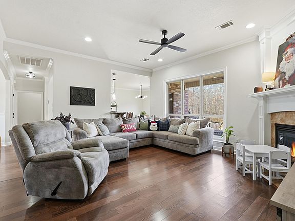 Beautiful single-story home, located in a cut-de-sac, features an open split floor plan with 4-bed and 2.5 baths. Updates throughout including fresh interior paint, new light fixtures and new sod in backyard. Kitchen features a gas range, granite counters, large breakfast bar, eat-in nook and separate dining room. Gas fireplace in living area for a cozy feel. Oversized primary suite features marble jetted tub, marble shower, dual vanities and incredible closet with built-in shelving and drawers. Outside features include a privacy fence, covered back deck and spacious yard with protected wooded area surrounding.