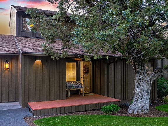 Look no further for breathtaking sunsets than your living room window! Overlooking the 15th fairway of the resort course at Eagle Crest, you will enjoy coveted views of the Cascade Mountains and Cline Butte. This meticulously updated home boasts fresh exterior & interior paint, new flooring throughout, all new custom window coverings, new garage door, and so much more! Ask for the full list of extensive upgrades. Live large with less square footage to maintain with an open floorplan, vaulted ceilings, & 2 Primary suites. The garage offers a converted office space with window and 2 storage closets. Don't miss the 3rd storage closet on front porch. Internet cat 6 was installed in all bedrooms for work at home or lightning-fast streaming. Stargaze from any of the three decks, hot tub, or jetted tub in the upstairs primary. The gated community has exclusive access to neighborhood outdoor pool and brand new pickleball/tennis and bocce courts. Seller to provide Buyer one year Home Warranty.