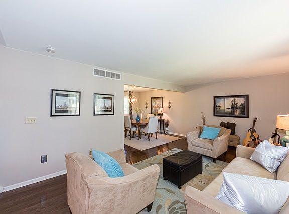 No need to look any further...this is the home you have been waiting for! This immaculate and move-in ready home features a beautiful foyer that welcomes each guest, gorgeous living room with hardwood floors, neutral decor, and large windows, formal dining room with updated chandelier and large windows, and beautifully updated kitchen with granite counter tops, tile backsplash, all stainless steel Frigidaire appliances remain, and informal dining area. The main floor family room is the perfect space to spend quality time with your family and friends and features two built-in bookcases, fireplace with brick surround, large window, brand new carpeting, and French doors to the screened-in patio. The spacious master suite has double closets, new carpeting, large window, ceiling fan, and lovely private bathroom with tile flooring, tile shower, and granite vanity. The finished basement rec room features neutral decor and ample storage space! Sit back and relax in this spacious screened-in patio wired for TV, recessed lighting, ceiling fan, and overlooking the very private wooded backyard! Newer AC, newer furnace, storage shed, security system, newer hardy board siding, and newer vinyl double hung windows. Truly move-in ready!!!