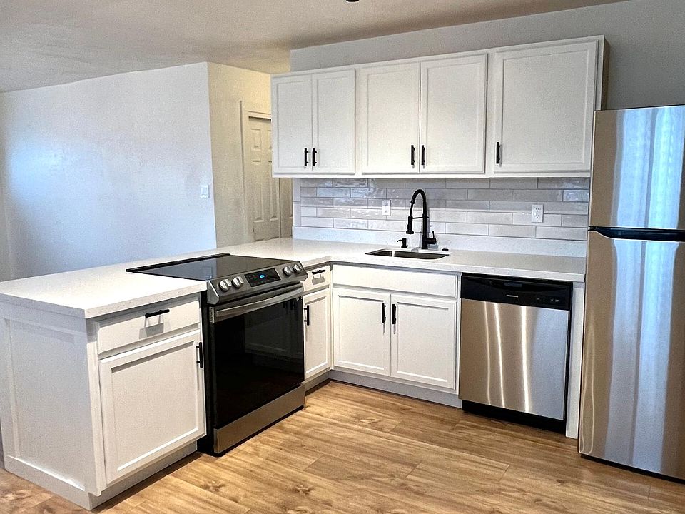 Welcome to our remodeled duplex that was remodeled 1 year ago, featuring two bedrooms and one bathroom. The kitchen has been thoughtfully designed with quartz countertops and an open concept to entertain friends and family. The unit contains a closed backyard and washer and dryer combo. This unit will be available on 9/1/25. Utilities: Water and trash is included. Experience the beauty and comfort of our remodeled duplex. Contact us today to schedule a viewing.