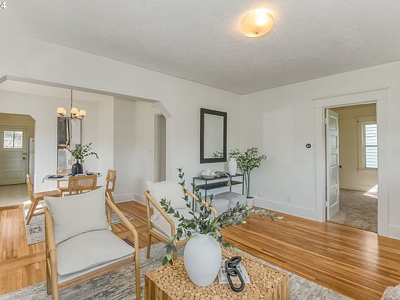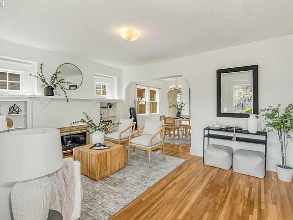 Beautiful Classic Bungalow in the Rose City Park Neighborhood. This home features an open living room and dining room concept with refinished hard wood floors, a brick wood burning fireplace, large windows that bring in plenty of natural light, views of greenery and the outdoor landscape. There are 2 bedrooms on the main level and a remodeled bathroom with tile throughout and updated fixtures. Kitchen has new luxury vinyl plank tile flooring and several windows for you to enjoy the backyard entertainment while cooking. The Basement offers an updated family room and a ton of room for creativity (there's potential to turn the family room to a 3rd bedroom), 200 amp panel, newer furnace/AC unit w/ smart thermostat. On the exterior you have a long driveway, newer roof/gutters, a nice level backyard that is fully fenced with a covered patio. Perfect for entertaining or relaxing! Ideal location steps away from Rose City Park/golf course, walk to food carts, shops, retail, restaurants etc!