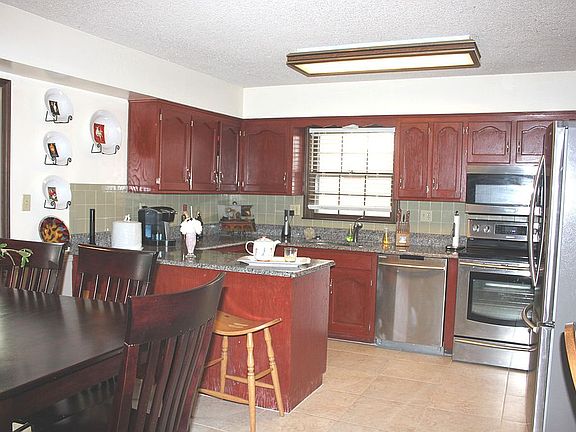 Hard to find 4 bed, 4 bath, 2 car garage on large corner lot in Gladstone. Granite counters, large kitchen features, stainless appliances and pantry with roll out drawers and walks out to patio with king size grill for your BBQ needs. First floor living room and family room with fireplace. Two master suites, one on main level that walks out to private deck. Huge finished basement w/ second fireplace, wet bar and full bath. Newer AC.
