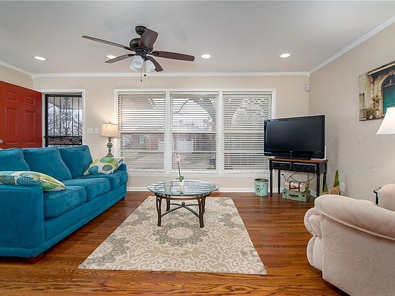 Amazing location 5 min to Classen Curve, shopping, and restaurants! 2 living spaces or you could make one space an office or 3rd bed, the options are limitless! The kitchen has a ton of cabinets with a built-in oven, gas cooktop, vent hood (2021), granite counters, fresh paint and tons of natural light. Front living space, beds and dinette all have hard wood floors while the 2nd living/den has carpet (2018) and trendy wainscoting! The hall bath has fresh paint while the 1/2 bath is off the den and master bed. Enjoy summer days in the pool & summer nights under your pergola watching a movie on the installed TV. Pool was installed in 2018, beautiful landscape stone installed in 2020, the raised garden bed installed in 2021 & the full house gutters with screens were installed in 2019. 30 lbs of fescue seed was just laid in the front and back yards. Have peace of mind with a brand new sewer line (2021). Hot water tank (2015). Ref, washer/dryer stay w/ the home!