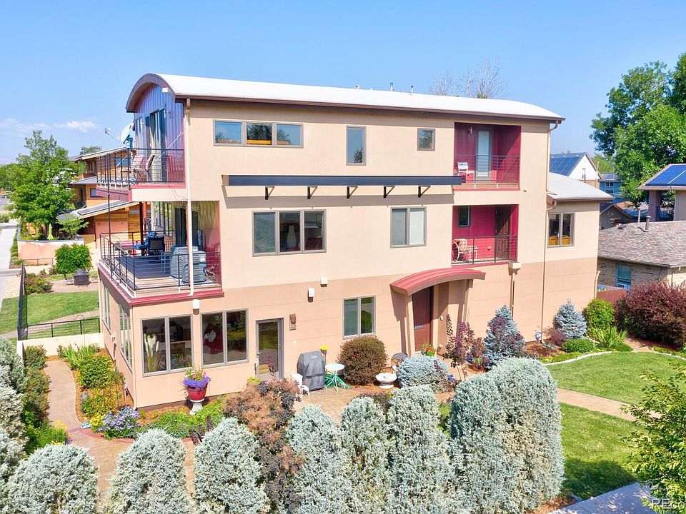 Unparalleled views of lake, park, mountains, city of Denver and Pike's Peak during the day. In the evenings you see the lights of downtown, stars and all shapes of the moon. Showcasing 3 levels of spacious openness is ideal for comfortable family living and perfect year-around entertaining. The main floor is open living for the kitchen, dining and living room (with ½ bath and large pantry) with large windows on 3 sides. This opens up into a secluded tree lined stucco walled ¾'s enclosed al fresco patio. Choose to sit in either direct sun or in the shade allows for meals throughout the day and into the evening. 2nd floor has a large covered deck for free entertainment from thanks to the unobstructed view of the park and all the fun happening there. The large entertainment room is perfect for TV watching and backup wet bar that makes snacks a breeze. There are 3 bedrooms on this floor with a Jack & Jill bathroom and a lovely east-facing deck shared between these 2 bedrooms--perfect for enjoying your morning coffee. 3rd floor master suite has walk-in-shower for 2, free-standing tub for 2, his and her closets, 11' wood beam ceilings, 8' tall patio doors south facing, yet another deck with even better views, just to name a few extras. There is a 2nd en-suite bedroom with an east facing deck, walk in closet and ¾'s bathroom on the 3rd floor as well. A few extras that you will find is a separate entrance on corner lot, 220v in over-sized garage, virtual silence from other unit, shelving in garage, gated overflow space for toys/tools/ladders/etc, and a home that is very energy efficient. Located close to downtown Denver (less than a mile), 1st Frisco exit is 1 hour away, light rail is 1 mile, breweries within walking distance, grocery stores,Target, Alamo Movie theatre and Little Man Ice Cream shop on Colfax. Listing agent is licensed in the state of Colorado and acting as a principal in this transaction.