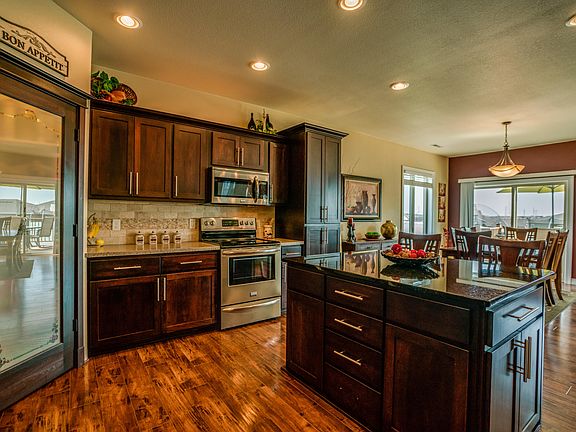 Absolutely stunning TWO STORY home located in a desirable neighborhood in NE Bismarck! The main level features an OPEN CONCEPT, grande entrance w/ high ceilings, water radiant heat throughout the hard surface flooring, kitchen includes corian and granite countertops, CHERRY CABINETS, walk-in PANTRY, CENTER ISLAND, informal dining area w/ sliding doors out the MAINTENANCE FREE DECK w/ gas accessible, bright living room w/ in wall, stone accented GAS FIREPLACE place. Plus there is a bedroom and a formal area that could be used as formal dining or a formal living room. As you go up the staircase w/ beautiful railing you will find 9' CEILINGS, huge family room, spacious MASTER SUITE w/ tray ceilings and full bathroom w/ DUAL SINKS, whirlpool tub and walk-in closet. There is also a built in Credenza, full bathroom, separate laundry area and 3 large bedrooms including one that has a full suite w/ full bathroom! The exterior has BEAUTIFUL LANDSCAPING w/ sprinkler system is FULLY FENCED in back and is maintenance free. Check out the virtual tour of this amazing home!