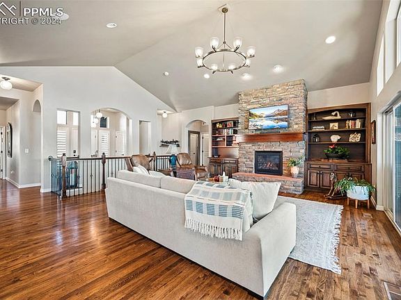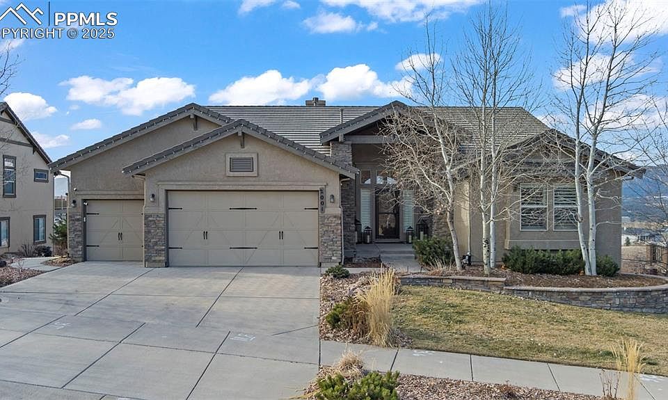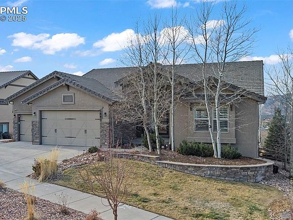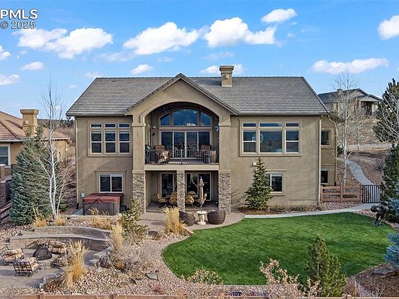 Nestled in a quiet cul-de-sac in the heart of Flying Horse Ranch! This beautiful ranch-style home is walking distance from the signature country club, spa, tennis courts, and Tom Weiskopf’s personally designed 18-hole golf course. Many high-end updates have been made to this home including California Closets Interior Design Company’s designs for walk-in closets, hall closets, and the laundry room. Updated new flooring, canister lighting throughout, elegant light fixtures, motorized shades, shutters, a fenced backyard, and full landscaping front and back. Enjoy views of Pikes Peak, the Air Force Academy, and Cheyenne Mountain while soaking in your cozy hot tub! The main level boasts a great room, vaulted ceilings, fireplace, built in book shelves, and an abundance of windows with plenty of Colorado sunshine. The gourmet kitchen is a chef’s dream with plentiful counter space, and an eating area in the kitchen and in the formal dining room. Also on the main level is a private study, a powder room, and the main suite with a 5-piece ensuite including a luxurious soaking tub, a separate shower and double sinks. The walk-out finished basement includes a recreation room, a wet bar, a full junior suite, and two additional bedrooms that share a jack-n-jill bathroom. Don't miss out on this incredible opportunity to own a Piece of PARADISE in this Flying Horse Community!!
