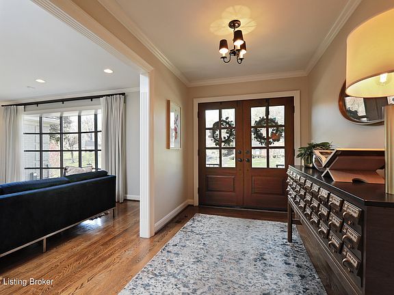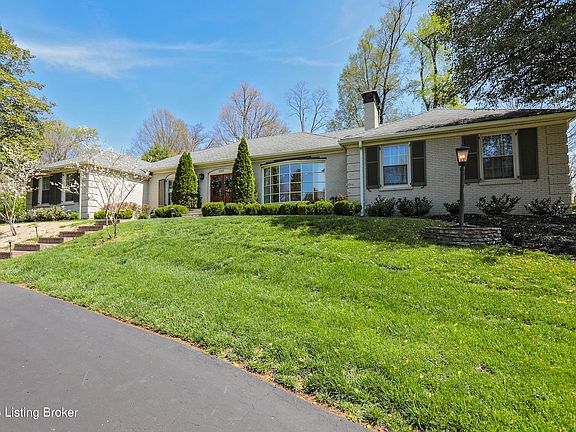 Nestled on a spacious three-quarter-acre lot in the highly sought-after Riverwood neighborhood--directly across from the historic grounds of Locust Grove--this stunning one-story residence offers the perfect blend of timeless charm, refined updates, and exceptional outdoor living. A mature landscape lines the peaceful, tree-shaded streets of Riverwood, complete with a neighborhood park and a sense of community that's truly rare. From the circle driveway, a brick walkway welcomes you to stately wood and glass French doors, opening to a welcoming foyer that immediately sets the tone for this open-concept home. Hardwood floors flow throughout the main living areas, beginning with a generous living room, framed by a large bay picture window, featuring a newly designed gas fireplace with built-in bench seating, storage, and warm sconce lighting. The heart of the home is the beautifully remodeled kitchen, showcasing white cabinetry, Carrara marble countertops, an enormous island with breakfast bar seating, stainless steel appliances, and a sun-drenched wall of windows overlooking the vaulted, covered lanai with wood plank ceiling detail. Adjacent to the kitchen, the cozy family room invites gatherings around a wood-burning brick hearth fireplace flanked by built-in bookcases and French doors which open to the covered lanai. A stylish butler's pantry/wet bar with a beverage fridge and butcher block countertop adds to the home's functionality and charm, seamlessly connecting to the elegant dining room with wall of windows offering sweeping views of the landscaped backyard. The home is designed for convenience with a mudroom featuring custom cubbies and closet space just inside the attached garage. Down the hall, a beautifully updated powder room gleams with Restoration Hardware accents, a pedestal sink, and custom tile accent wall. The private bedroom wing includes a luxurious primary suite with two custom closets and a spa-inspired ensuite bath complete with marble-topped double vanity, fully tiled walk-in shower with frameless glass, and a separate water closet. Three additional bedrooms offer unique features--built-in bunk beds, desk areas, and custom closet systems--while sharing a stunningly updated hall bath with double vanity, charming storage cabinetry, and a tub/shower combo. The lower level expands your living space with a wide-open layout ideal for a family room, billiards or game area, and even includes a fireplace with brick hearth for added warmth and comfort. A separate room with a closet and adjacent full bath--perfect for an office, guest space, or flex bedroom--adds versatility. A large laundry and utility room and abundant storage complete this level. Step outside, and you'll discover a backyard sanctuary designed for year-round enjoyment. Dine alfresco under the vaulted wood-covered lanai with an infrared heater, then gather around the outdoor stone fireplace on cool evenings. The terraced backyard is a peaceful haven, surrounded by mature trees and lush landscaping, and even includes a charming cottage-style playhouse that could easily double as a garden shed. This is more than a home--it's a lifestyle, in one of Louisville's most cherished neighborhoods. Come experience all the character, comfort, and convenience Riverwood has to offer.