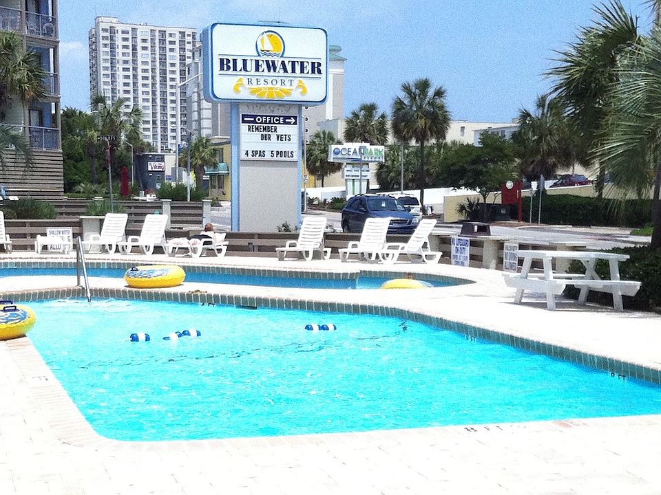 Priced for quick sale! Clean, well maintained unit for vacation rentals or a second home on the beach. Ceramic tile throughout condo. The bedroom is furnished with 2 full beds in the bedroom and dining/living area with a Full size sleeper sofa. Each room has a Flat Screen with cable TV. The kitchen and bath area separate the two rooms. The Galley Kitchen is equipped with Stove, Microwave, Refrigerator, Coffee Maker. Kitchen is stocked with plates, glasses, silverware, cookware and cooking utensils. Condo sleeps 6 max. Onsite amenities include indoor pool and spa, 3 outdoor pools and 3 jacuzzis, a lazy river, dry sauna, poolside food and beverage service, restaurant, outdoor entertainment, private beach access with showers, game room, lounge areas, and more resort luxuries. 2 onsite parking lots and a secured parking garage for parks. Close to restaurants, shops, boardwalk, Family Kingdom, water parks, Grand Prix Speed Park, Ripley's Aquarium, Carolina Opry, Para Sailing, wave runners, banana boat rides and many other area attractions and activities. A short walk to 2nd Avenue Pier and Myrtle Beach State Park Pier with lots of beach activities in between. The perfect beach vacation spot - Bluewater Resort.