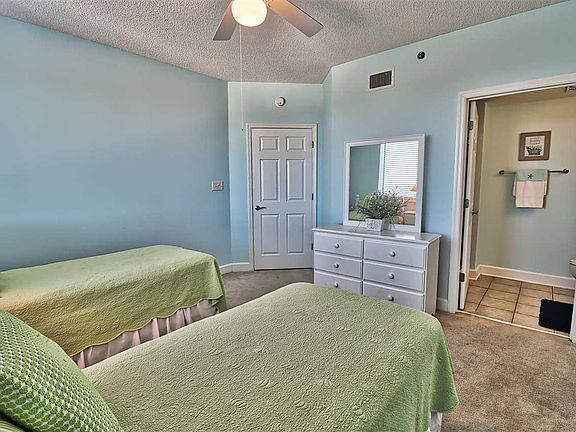 Penthouse PH1 Feel the relaxation in a Bright Airy 2 BEDROOMS, 2 Baths, OCEAN VIEW UNIT OFF LARGE BALCONY. Views of the ocean & coastline , Open & spacious floor plan, New flooring throughout unit, carpet in both bedrooms, ceiling fans in every room, granite kitchen, pantry, stove, Master bath has a whirlpool tub, Mater Bedroom with access to ocean view balcony, washer & dryer, lots of windows throughout this end unit. Special Penthouse PRIVATE Parking Garage Enclosed, gated and secure, storage closet on same level as garage, Key Fob Access only! A wonderful retreat to make a great primary, 2nd home or investment property! Amenities Includes; Fitness Club over looking ocean , beach and pool, Outdoor pool, Indoor pool, & hot tub. Excellent location to Restaurants and Bars, Beach Stores, Water Sports, Bike Rentals, and Hwy 17. Short drive to attractions, shopping, Barefoot Landing & Golf. QUILT IN MASTER BEDROOM DOESN'T CONVEY. Added and changed furniture from pictures.