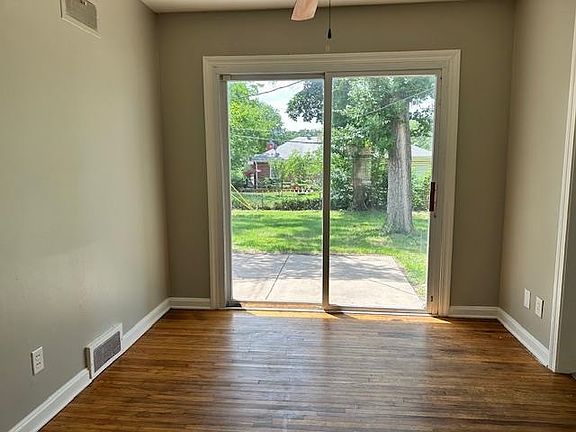 3 bedroom home in southeast Wichita on a corner lot. Hardwood floors throughout the home. The kitchen appliances remain with the home. Updated vinyl windows. Fenced backyard with a back patio and a storage shed. Covered front porch and a single car garage. Clean and move-in ready.