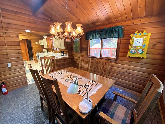 Unique & Custom Log Cabin - This property offers a couple different functionalities - whether it's income property you are looking for - where you live upstairs and rent out the lower unit - or you have family living with you that wants their own space (kitchen/living/bedrooms) separate from the main house - This one features it all. A large lower deck and smaller decks off the large great room, along with the great quintessential charm of your cabin in the woods! Upstairs features one bedroom, one bath, kitchen living and multiple decks. Downstairs features three bedrooms and one bath, a separate kitchen & living room, plus laundry, along with a large deck to sit and enjoy the mountain living! There is a one car garage with workshop area and a half bath! Come take a look!