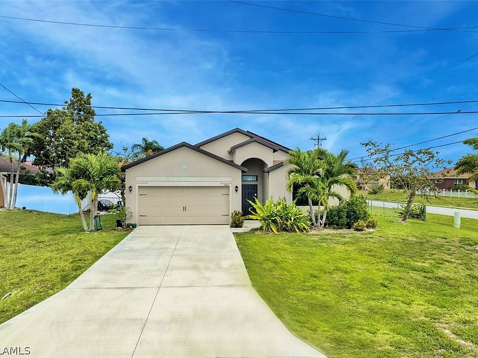 Welcome to your new home in SW Cape Coral! This single-family residence was built in 2017 and has 3 bedrooms, 2 baths, a spacious 2-car garage, newer roof, and solar panels. As you step inside, you'll be greeted by high ceilings and an open floor layout. The kitchen features granite counters, a convenient breakfast bar, and stainless-steel appliances. The master bedroom has a large walk-in closet, and the master bath is complete with a soaking tub and walk-in shower, offering the perfect place to unwind after a long day. Outside, enjoy the Florida sunshine in your large, fenced yard with a hot tub. Located in the desirable SW Cape Coral area, this home offers easy access to shopping, dining, schools, and more. Don't miss your chance to make this property your own!