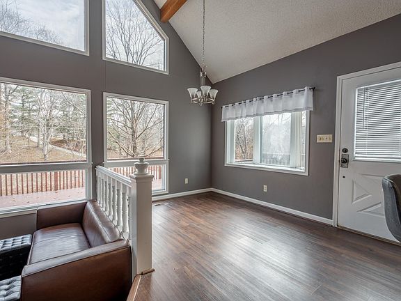 Situated on a West side, this 2 bedroom, 1.5 bath home offers charm & character throughout. This great home offers lofted ceilings, a large open deck, an outbuilding for storage and much more! The entry opens to the spacious living room with fireplace, lofted ceiling, and large windows allowing for an abundance of natural light. The dining room located off the kitchen is perfect for entertaining family & friends. The kitchen includes a breakfast bar and plenty of cabinet storage. The main level also offers 1 bedroom, a full bath, and laundry room. The upper level offers a large bedroom with attached bath, and includes a walk-out area to the fenced in backyard. The home also features a detached outbuilding with plenty of storage space. This home is conveniently located on the west side, just a short drive from USI, restaurants, and shopping.